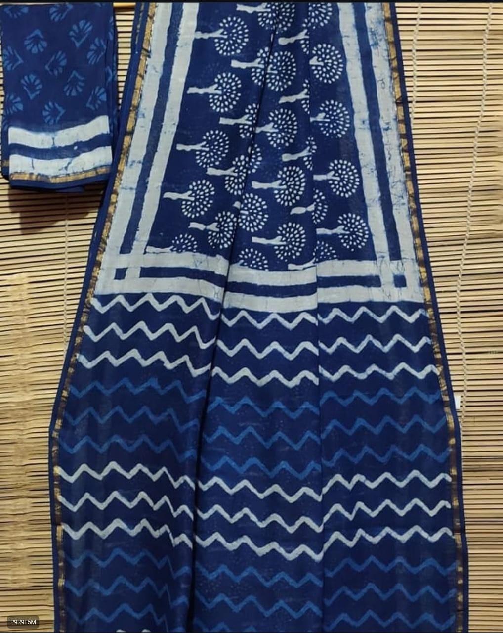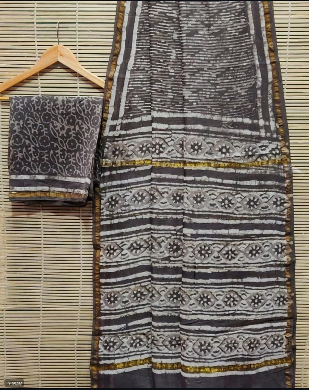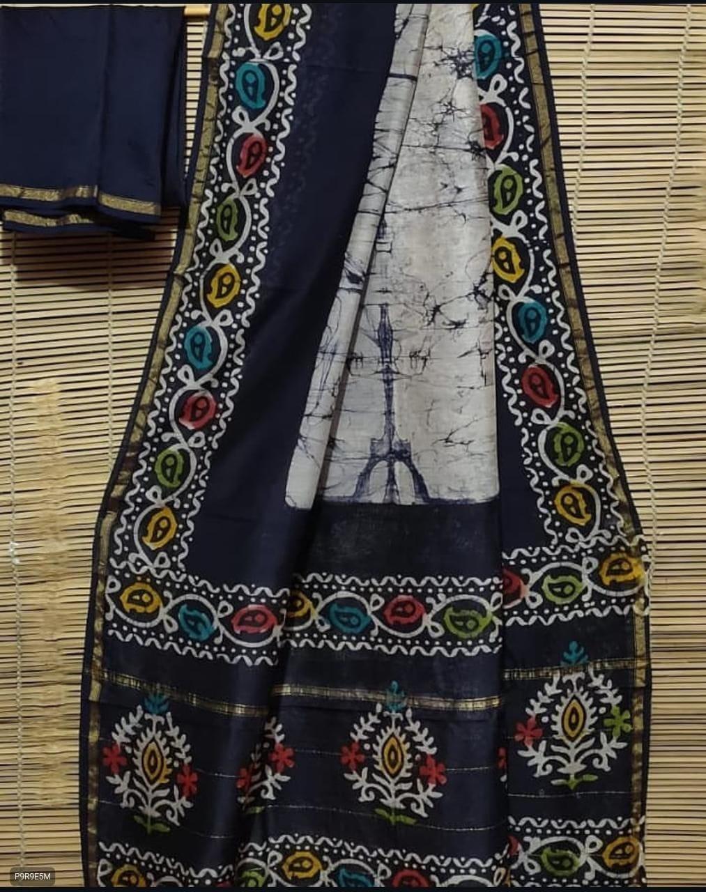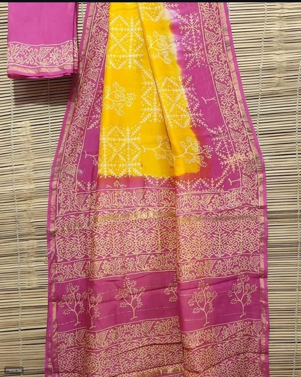 Fabric: Chanderi Silk with Gold Border Patti Digital Printed Saree