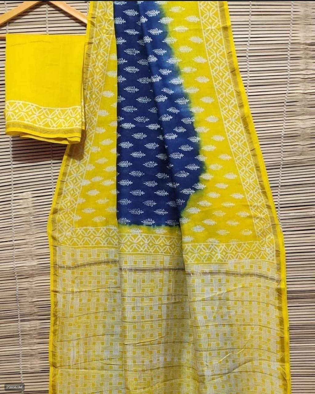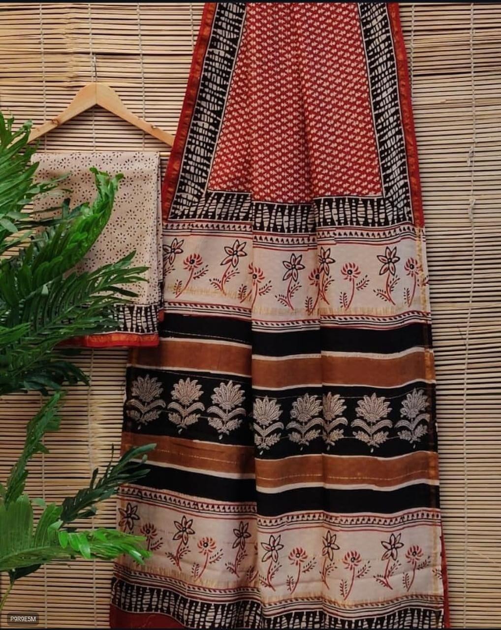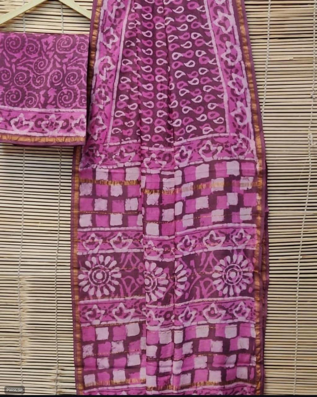 Fabric: Chanderi Silk with Gold Border Patti Digital Printed Saree