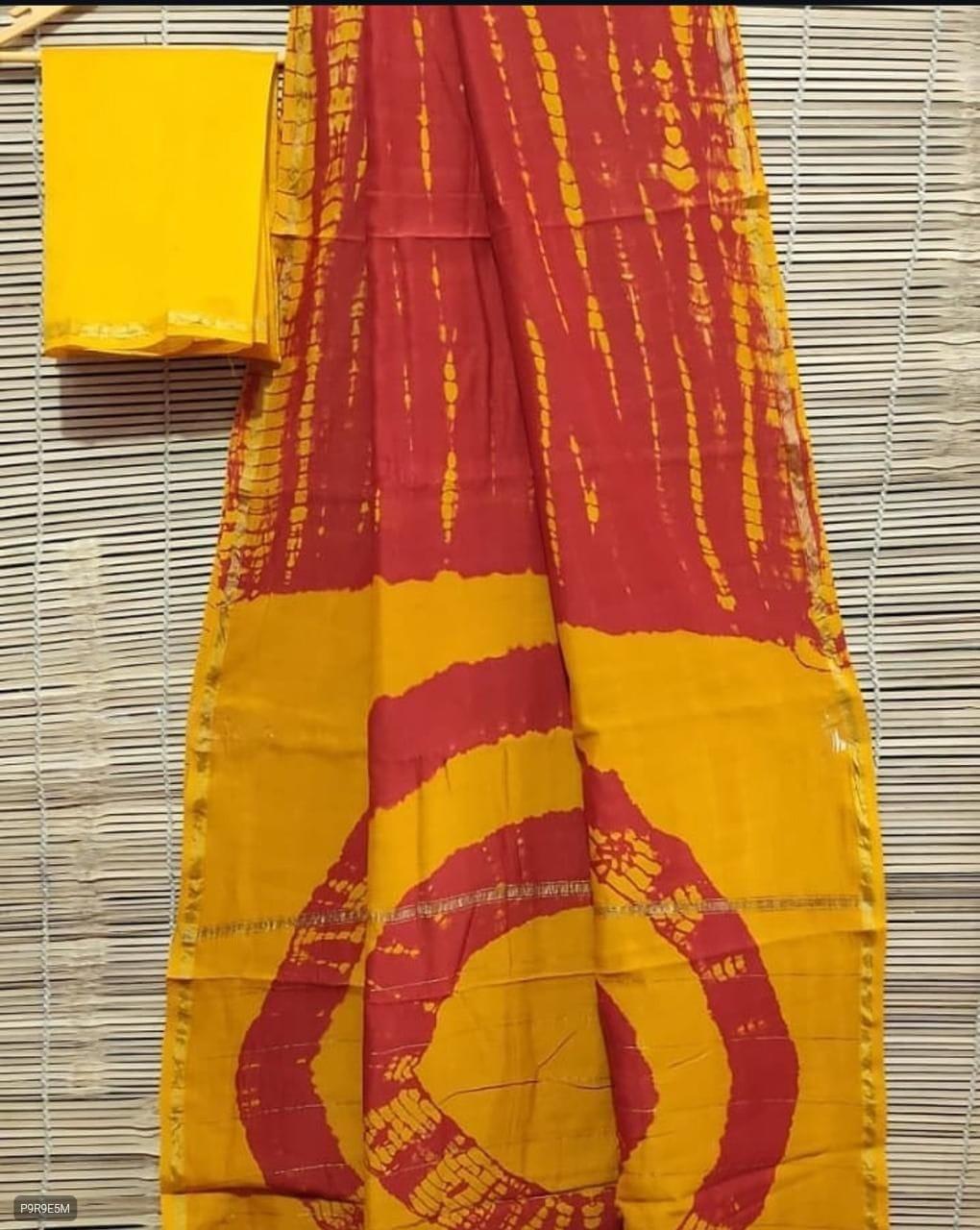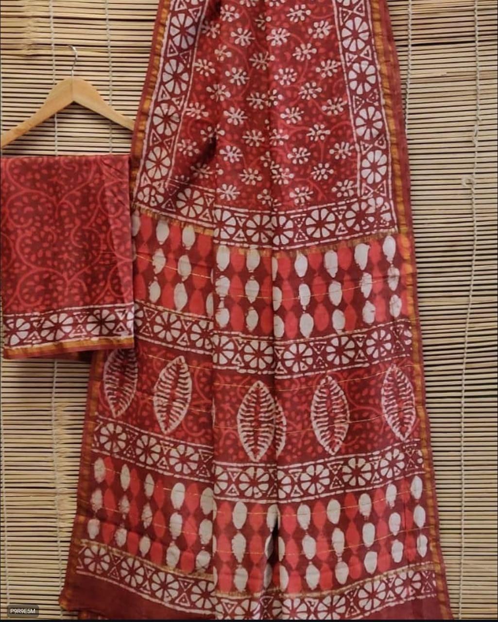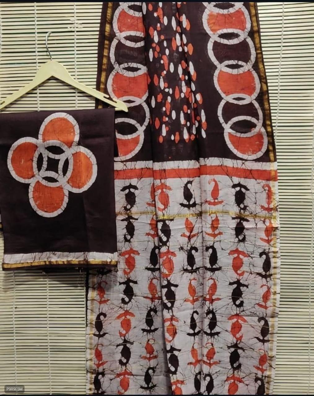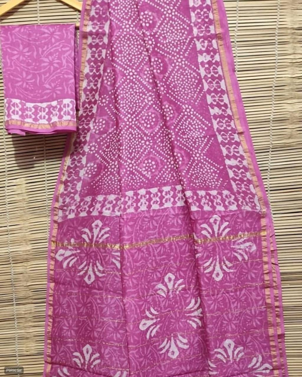 Fabric: Chanderi Silk with Gold Border Patti Digital Printed Saree