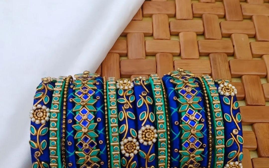 Royal blue silk thread kundan stone bangles customized