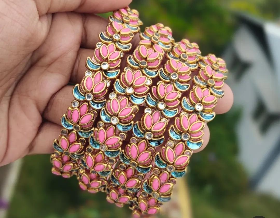 Bloom in beauty on your big day with our stunning lotus pattern bridal Bangles customized