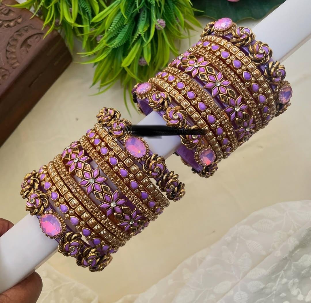 Pretty purple clr silk thread kundan stone bangles customized