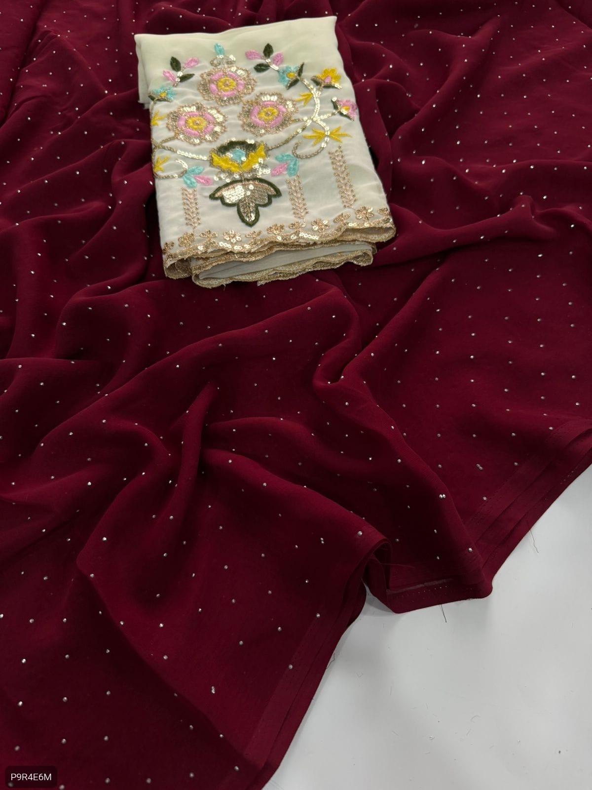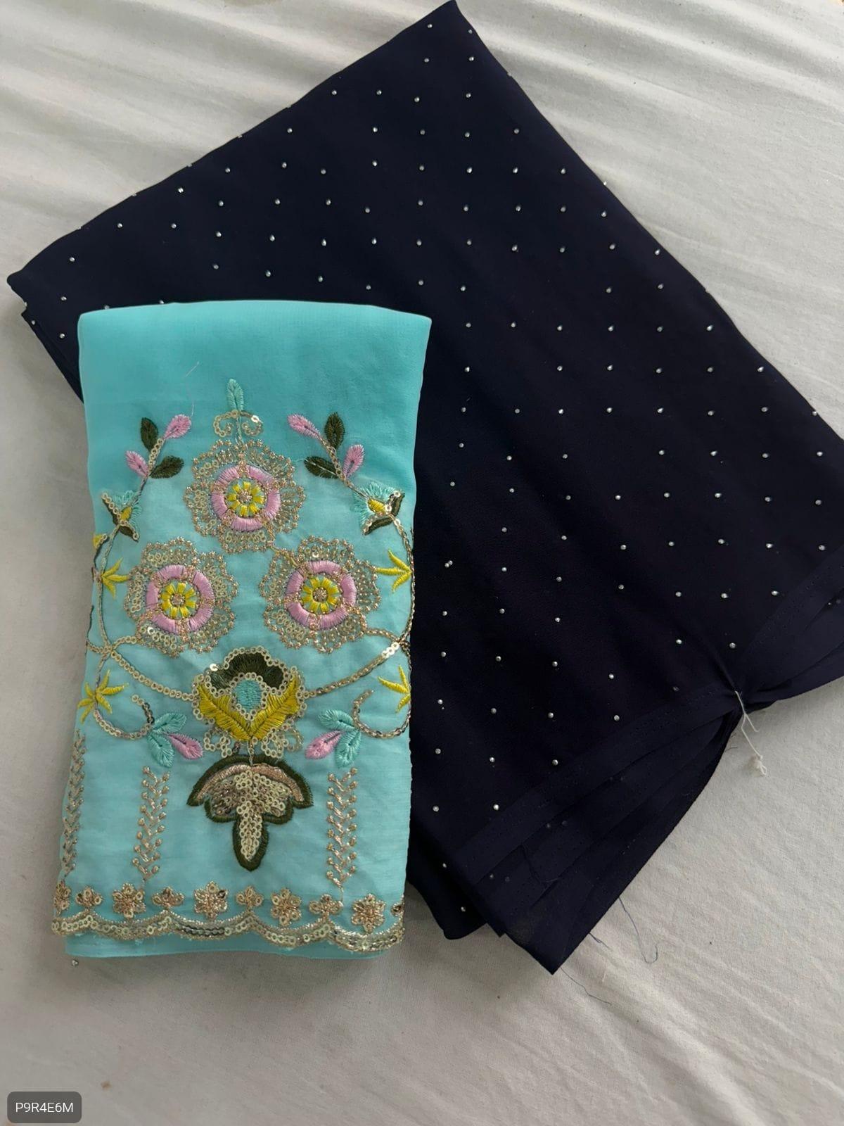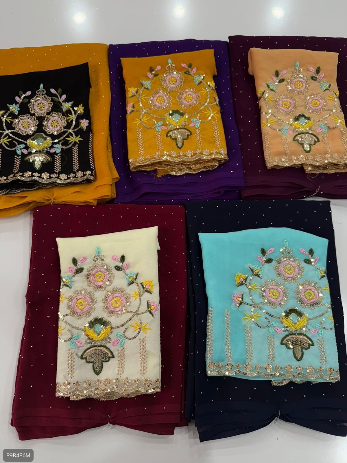 Pure georgette saree with all over seroski with beautiful embroidery & sequence work blouse