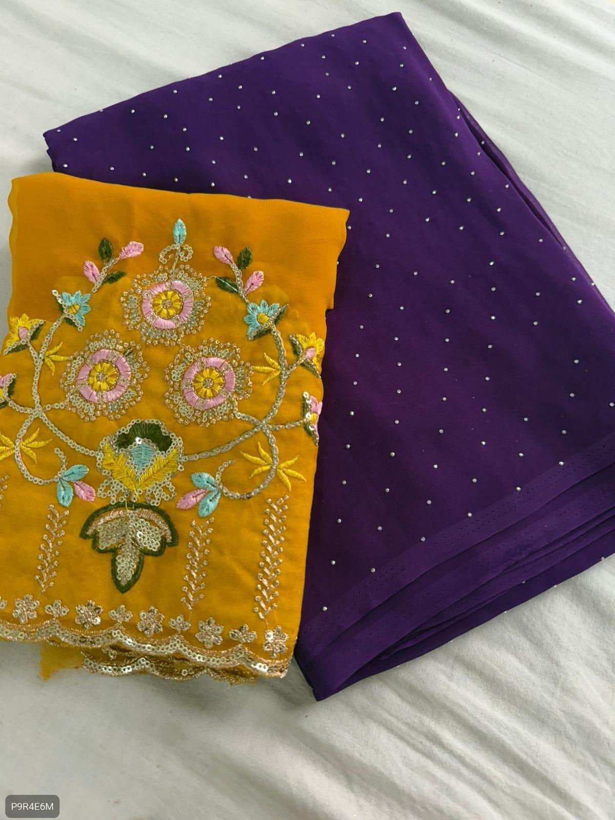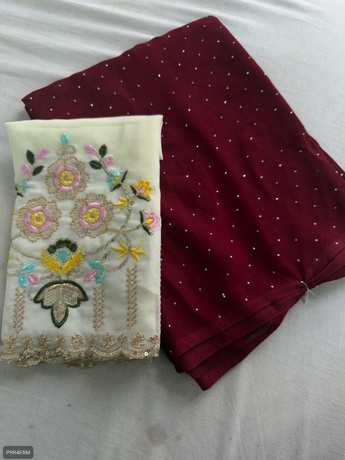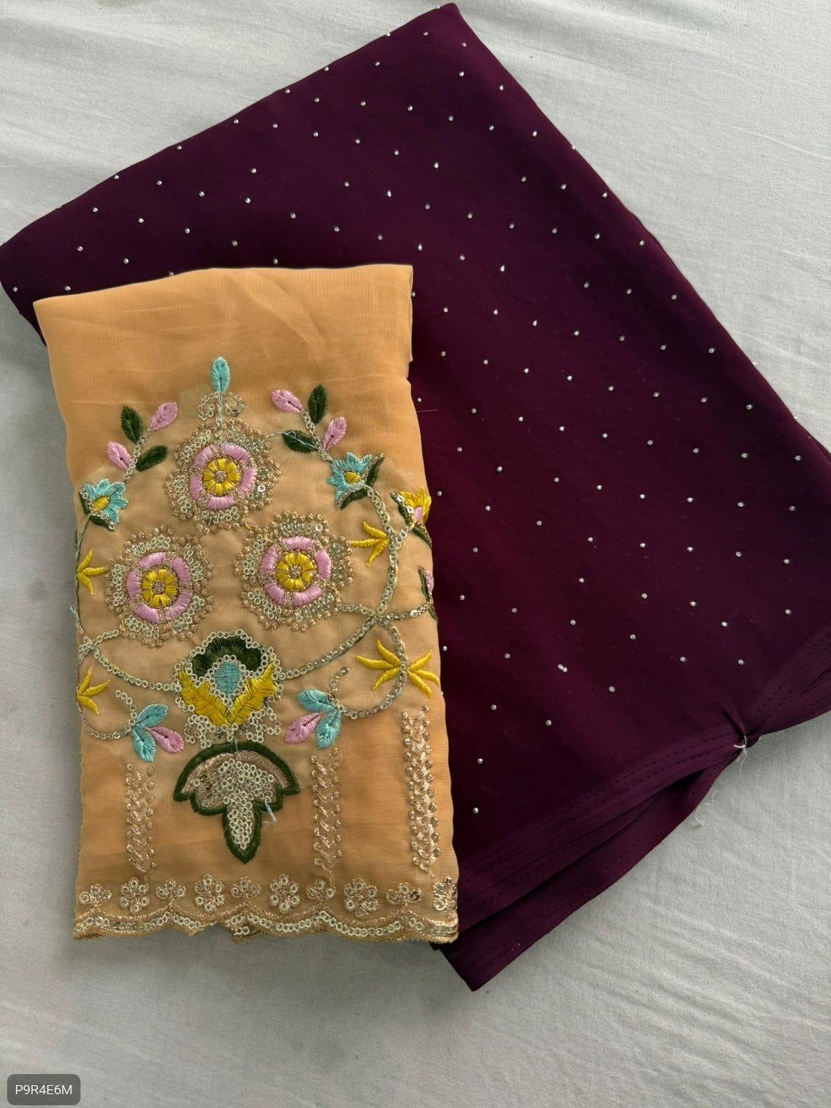 Pure georgette saree with all over seroski with beautiful embroidery & sequence work blouse