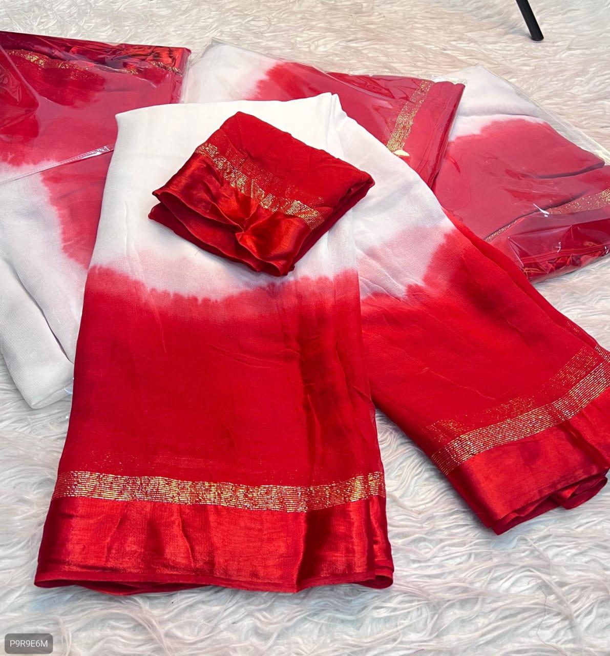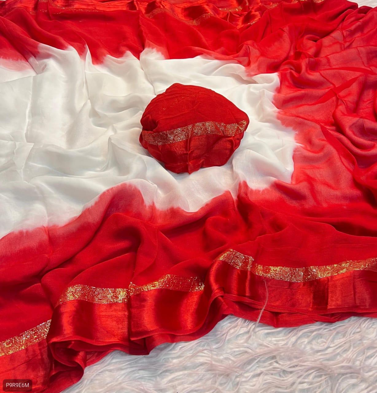 ▶️ Fabric - Satin Patta Pure Viscose Georgette Saree With Fancy Contrast Blouse